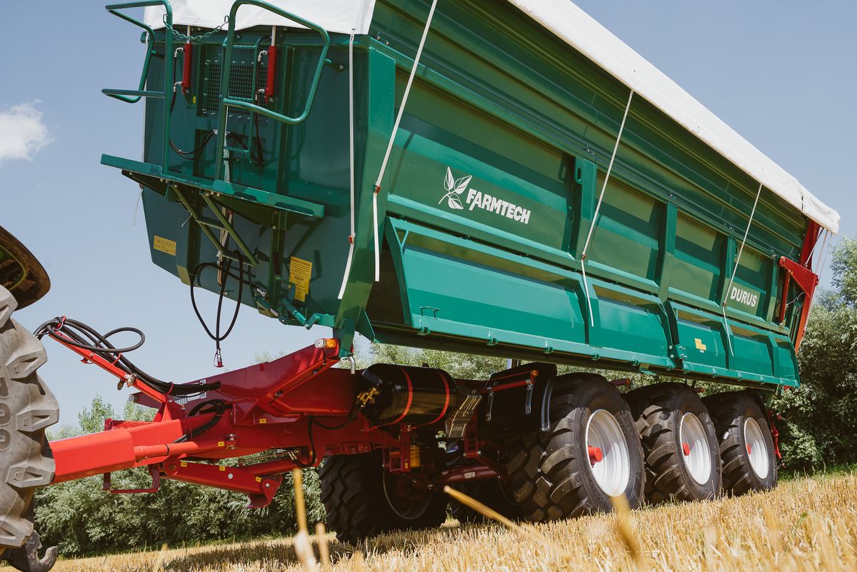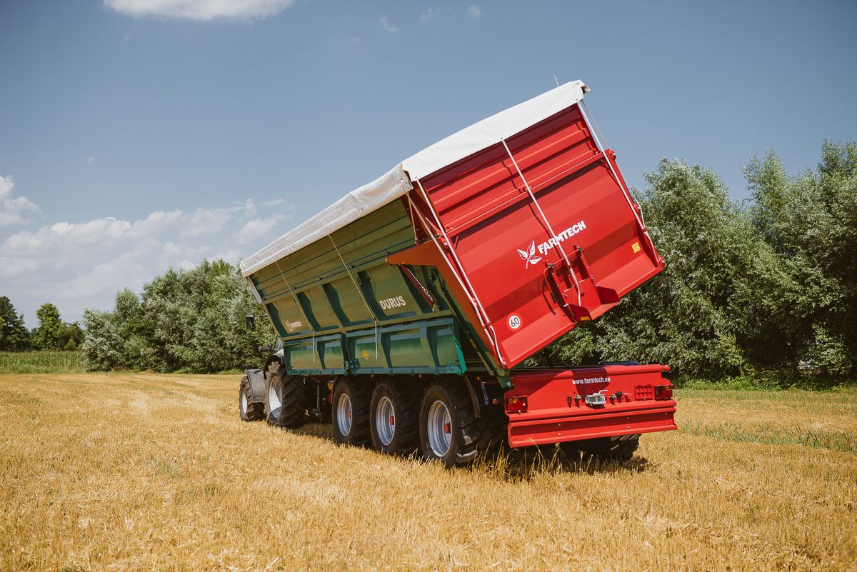 Der Universal-Muldenkipper Durus von Farmtech eignet sich zum Transport sämtlicher landwirtschaftlicher Güter, besonders für Silage, Getreide, Hackschnitzel und andere lose Schüttgüter. Dabei gewährleistet die konische Brücke mit sehr hoher Elastizität eine schnelle und vollständige Entleerung.