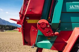 Neben dem Standardstreuwerk erweitert die Option Universalstreuwerk das Einsatzspektrum: Die Kombination aus zwei liegenden Fräswalzen und massiven Streutellern sorgt für eine präzise und homogene Ausbringung mit einer Streubreite von bis zu 22 Metern. Mit einer dichtschließenden Volumenklappe ist der Ultrafex auch zum Silagetransport bestens geeignet.