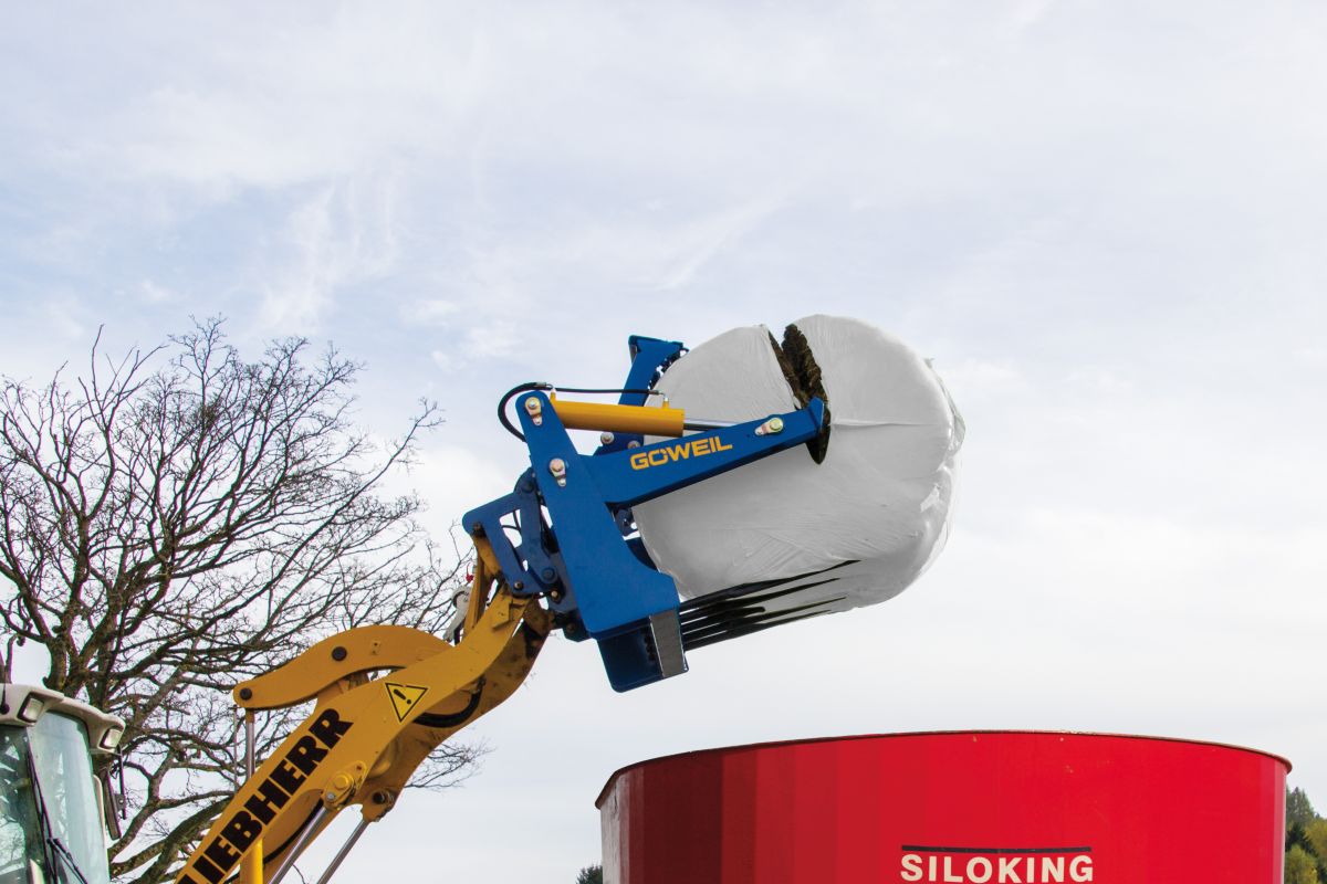 Der RBS wurde speziell zum Schneiden sowie zum Transportieren von Silage-, Heu- und Strohballen konzipiert. Mit dem Rundballen-Schneider können die Ballen ganz einfach zur Fütterung zerteilt werden. Die gezackte Form des Messers garantiert neben dem sicheren und robusten Schnitt, dass der Ballen komplett durchgeschnitten wird.